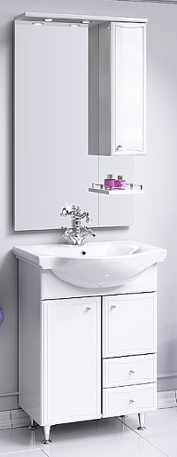 Комплектация: шкаф с зеркалом, полочкой и встроенными галогеновыми светильниками.