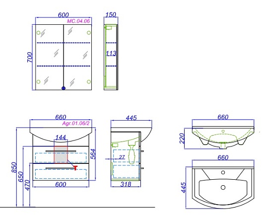Тумба с раковиной Аллегро 65 - арт. Agr.01.06/2