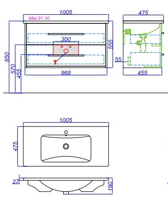 Тумба с раковиной Майами 100 - арт. Mai.01.10