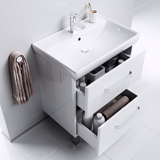 - тумба под раковину: 2 выдвижных ящика с ручками, ножки