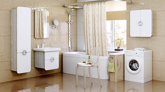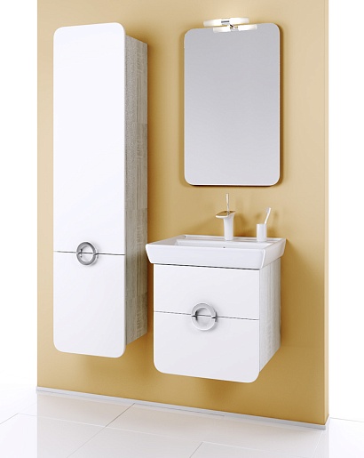 Описание: Подвесной пенал для ванной с распашными дверцами. Ориентация левая.