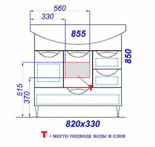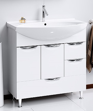 Описание: Тумба под умывальник с 4 ящиками, опорные ножки.