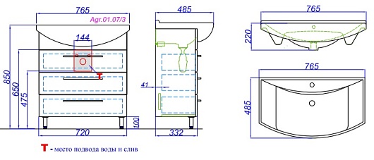 Aqwella Тумба с раковиной Аллегро 75 напольная