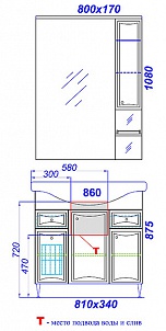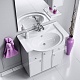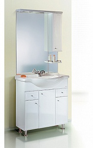 Описание: тумба на хромированных ножках, с раковиной (Дрея 85, арт. 28209), ящиками и секциями для хранения.