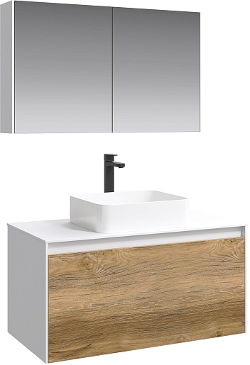 Aqwella Тумба с раковиной Mobi 100 белый/дуб балтийский