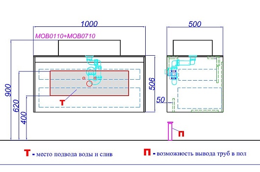 - Корпус подвесной тумбы 100 см под умывальник, арт. MOB0110W, белый