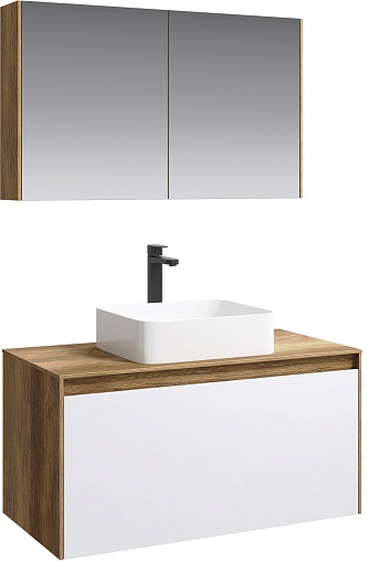 Aqwella Тумба с раковиной Mobi 100 дуб балтийский/белый