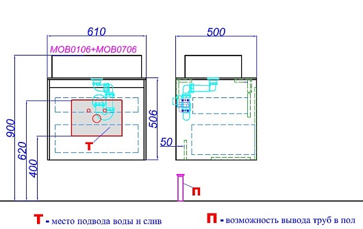 - Корпус подвесной тумбы 60 см под умывальник, арт. MOB0106W, белый