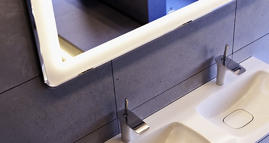 - зеркальное полотно с широкой полосой пескоструя (абразивной холодной обработкой)