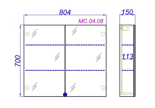 Aqwella Зеркало-шкаф для ванной МС 80 дуб сонома