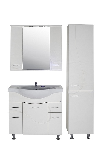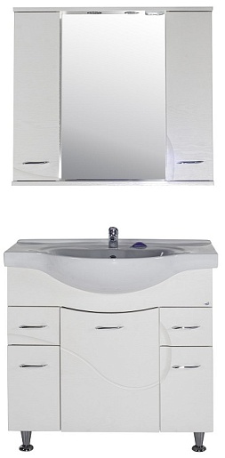Описание: влагостойкое зеркальное полотно, шкафчики, полочка, розетка, выключатель.