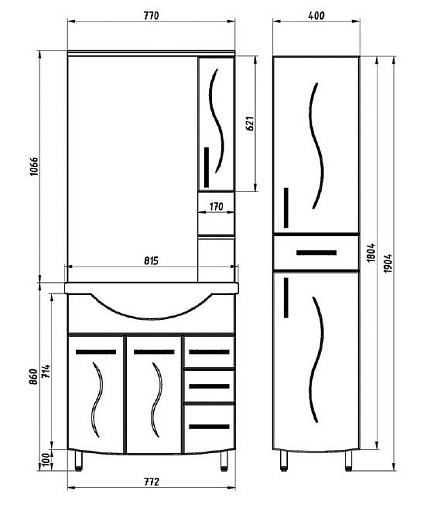 Описание: напольная тумба с тремя выдвижными ящиками и двумя дверцами. Доводчики обеспечивают комфортное закрывание. Комбинированные ручки белый/хром имеют удобную для открывания форму. В комплект входит мебельная раковина Балтика 80 (Санитек)