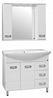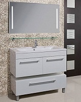 Описание: напольная тумба с распашными дверцами плавного закрывания и выдвижными ящиками. В комплект входит фаянсовая раковина Энигма 100 и хромированные ножки и ручки. Фасад МДФ и корпус ЛДСП глянец.