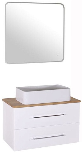 Описание: подвесной комплект со столешницей из массива дуба. Ящики с механизмами плавного закрывания. Корпус и фасады изготовлены из влагостойкого МДФ покрытого высокоглянцевой эмалью. Тумба комплектуется керамической раковиной Олимпия 560.