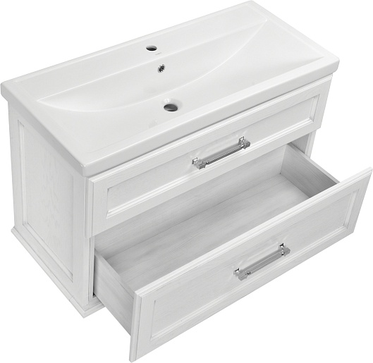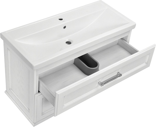 Тумба с раковиной подвесная ASB-Woodline Венеция 100 белая патина серебро - арт. 11956 / 22322.