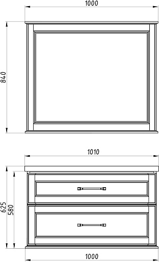 Комплектация: тумба под раковину, раковина, зеркало, столешница.