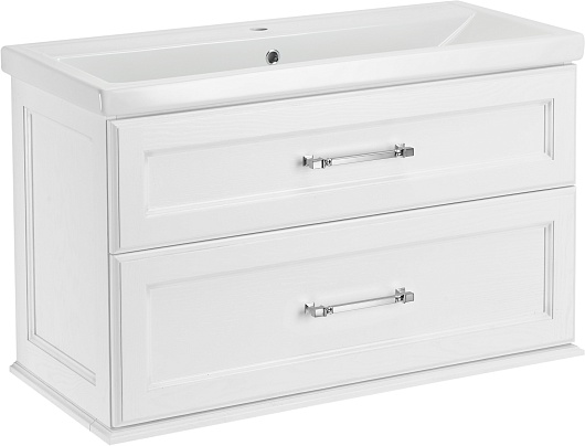 Тумба под раковину Венеция 100 подвесная белая патина серебро