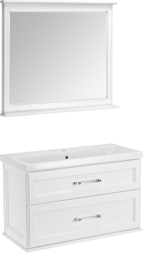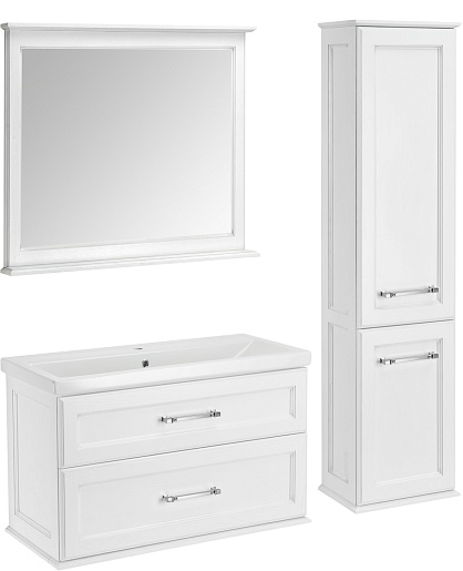 ASB-Woodline Мебель для ванной Венеция 100 подвесная белая патина серебро