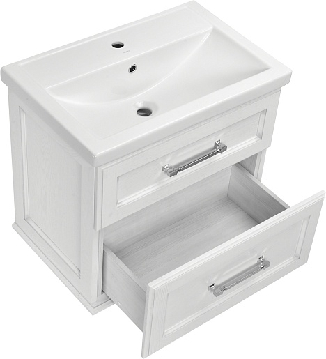 Тумба с раковиной подвесная ASB-Woodline Венеция 70 белая патина серебро - арт. 11955 / 16697.