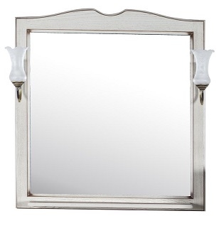 Описание: влагостойкое зеркальное полотно в изысканной раме из массива ясеня, полочка, два светильника.