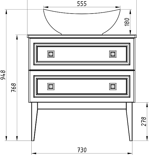Комплектация: тумба под раковину, столешница, ножка (4 шт.).