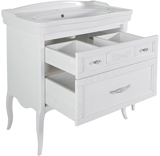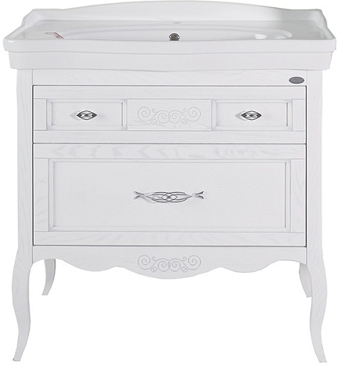 ASB-Woodline Тумба под раковину Модерн 85 белый (Патина серебро)