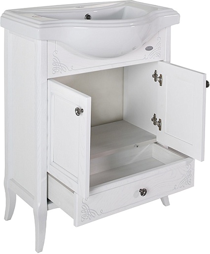 ASB-Woodline Тумба под раковину Салерно 65 белый/патина серебро