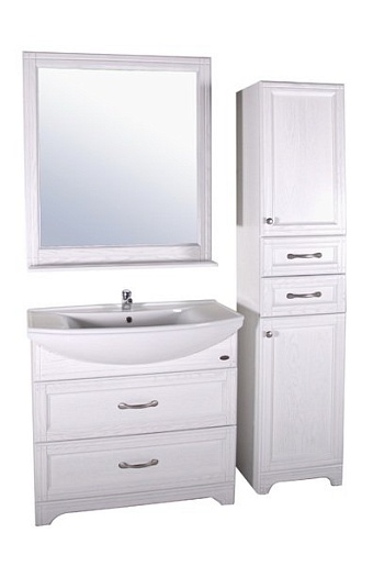 ASB-Woodline Тумба с раковиной Берта 85, массив ясеня, белый/патина серебро