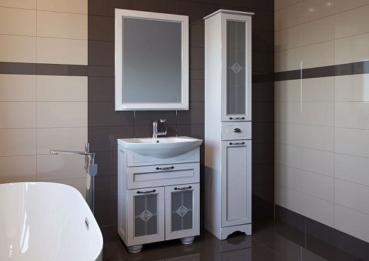 ASB-Woodline Зеркало для ванной Бергамо 65 белое, массив ясеня