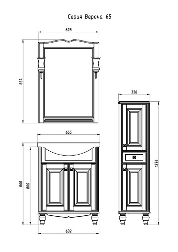 ASB-Woodline Зеркало для ванной Верона 65 бежевое патина, массив ясеня