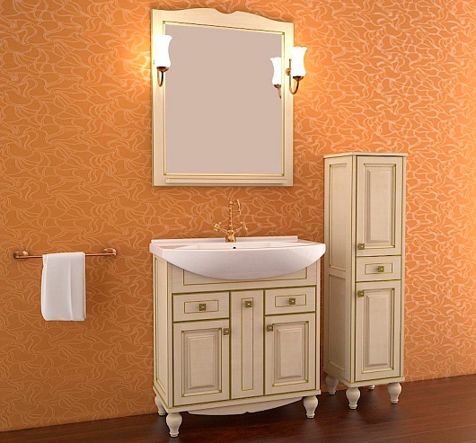 ASB-Woodline Зеркало для ванной Верона 75 бежевое патина, массив ясеня