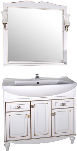 ASB-Woodline Зеркало для ванной Верона 85 белый/патина золото, массив ясеня