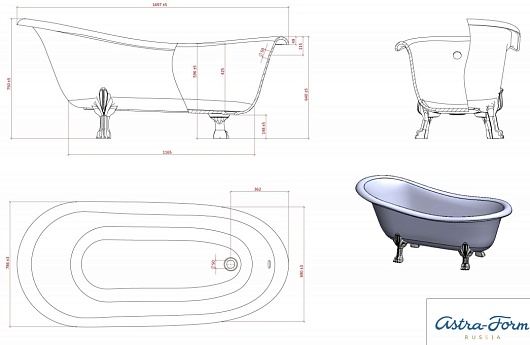 Astra-Form Ванна РОКСБУРГ, литой мрамор, белые ножки
