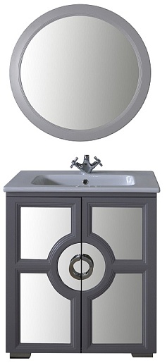 Тумба под раковину Бишо: два распашных фасада с вставками из зеркала.