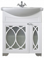 Тумба под раковину Доминикана 65: распашной фасад с вставками из отпескоструенного стекла.