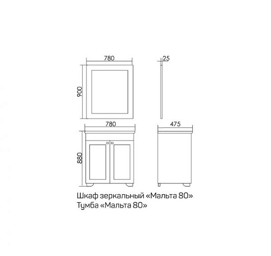 - Тумба под раковину Мальта: распашные фасады, ручки с камнями Swarovski.