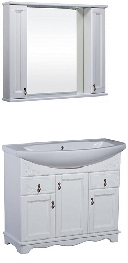 Bas Мебель для ванной Варна 105 белый, глухие дверцы, зеркало-шкаф