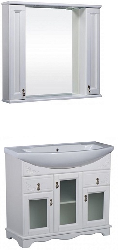 Bas Мебель для ванной Варна 105 белый, вставки стекло, зеркало-шкаф