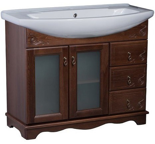 Тумба под раковину Варна 105 орех, вставки стекло, 3 ящика