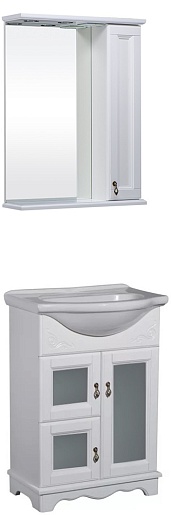 Bas Мебель для ванной Варна 60 белый, вставки стекло, зеркало-шкаф