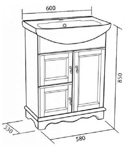 - Тумба с раковиной: раковина Миа 60 (Делла), тумба с дверцами, крашеные фасады из натурального бука, боковины из ламинированного ЛДСП, петли с доводчиками.