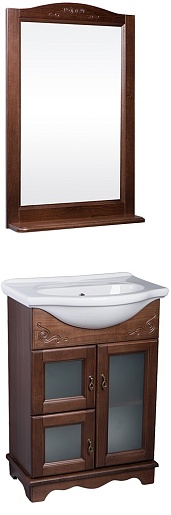 Bas Мебель для ванной Варна 60 орех, вставки стекло, зеркало