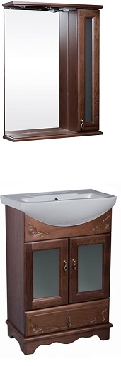 Зеркало-шкаф для ванной Варна 65 орех, вставки стекло