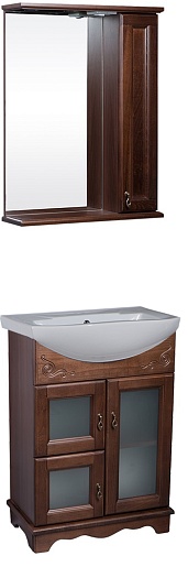 Bas Мебель для ванной Варна 65 орех, вставки стекло, зеркало-шкаф