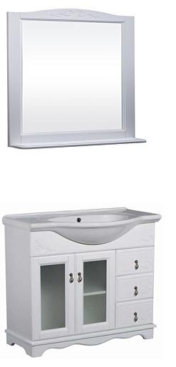 Bas Мебель для ванной Варна 85 белый, вставки стекло, 3 ящика, зеркало