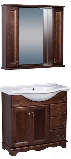 Bas Мебель для ванной Варна 85 орех, глухие дверцы, 3 ящика, зеркало-шкаф