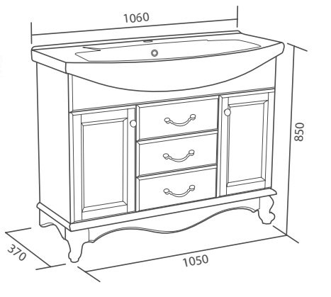 - Тумба с раковиной: раковина Элеганс 105 (Киров), тумба с дверцами, ящиками, крашеные фасады из натурального бука, боковины из ламинированного ЛДСП, петли с доводчиками.