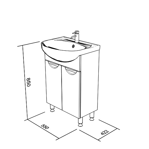 Две распашные дверцы с плавным закрыванием (доводчик); Металлические регулируемые ножки.