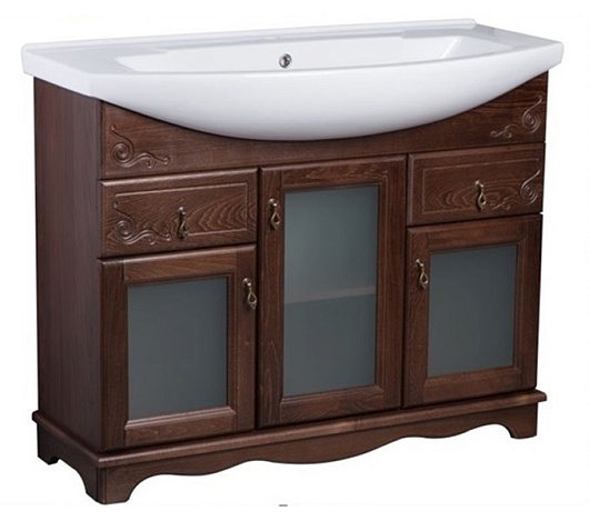 Bas Тумба под раковину Варна 105 орех, вставки стекло, 2 ящика