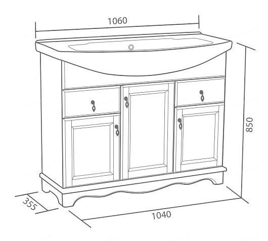 - тумба под раковину: 3 распашных дверцы, 2 ящика, вкладные полки, резные ножки, комплект доводчиков.